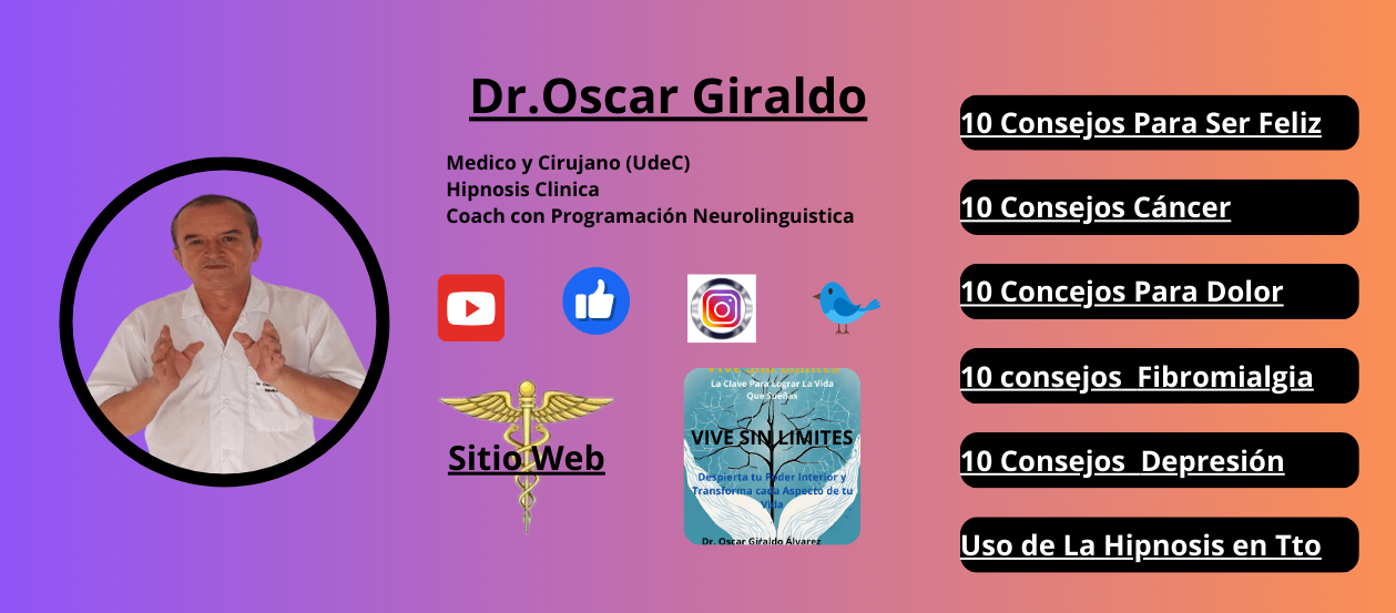 Soy Médico y Cirujano egresado de la Universidad de Caldas en el año de 1982, por mi dedicación permanente al estudio, hasta el 2023 poseo 46 entre Diplomados y cursos ,destacándose varios Diplomados de Salud Ocupacional ,Hipnosis Clínica y Terapia Regresiva, Certificación Internacional de Coach con Programación Neurolinguistica,master coach de Negocios, Master en Marketing digital y Analítica web, En mi Canal de YouTube al cual te invito a que te suscribas tengo aproximadamente 2.400 videos publicados y cuento con 27.540 suscriptores,Te ofrezco también 11 de mis libros los cuales están en formato e-books y que puedes descargar facilmente,atiendo consulta en forma permanente en mi consultorio de la carrera 3aA Número 7-44